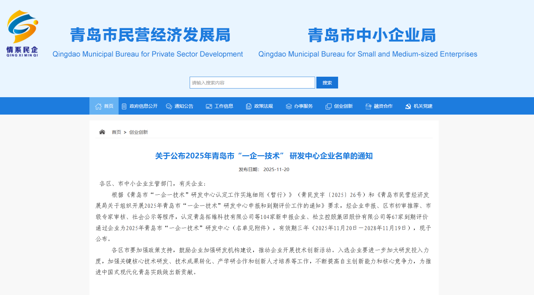 11月20日,2025年青島市“一企一技術(shù)”研發(fā)中心認(rèn)定名單正式公布。青島海洋新材料科技有限公司(AMMT海美特)憑借在改性聚脲技術(shù)的深厚積累與創(chuàng)新成果成功獲得認(rèn)定,標(biāo)志著企業(yè)在高分子材料領(lǐng)域的專業(yè)實(shí)力和技術(shù)創(chuàng)新水平獲得官方認(rèn)可,是海美特技術(shù)創(chuàng)新道路上的又一重要里程碑。