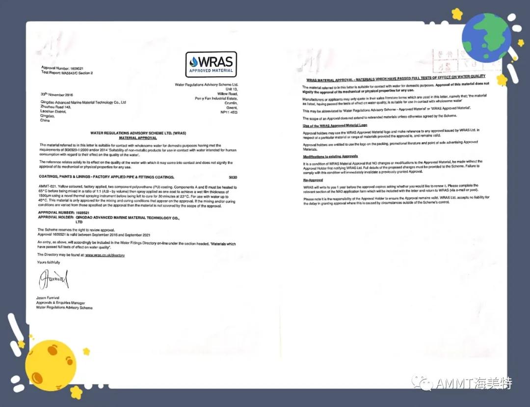 AMMT聚脲系列產(chǎn)品由半預(yù)聚體、聚醚、擴(kuò)鏈劑等原料組成,綠色環(huán)保,100%固含量,零VOC,經(jīng)過現(xiàn)場噴涂成型的第三代聚脲彈性體。目前主要產(chǎn)品有:AMMT-021管道防腐材料、AMMT-022聚脲防腐材料、AMMT-030高性能聚脲防水材料等。其中管道防腐材料,通過了衛(wèi)生部飲用水檢測和英國皇家水務(wù)飲用水認(rèn)證,達(dá)到涉及飲用水的標(biāo)準(zhǔn)。