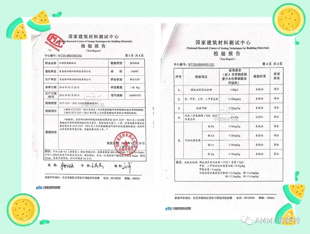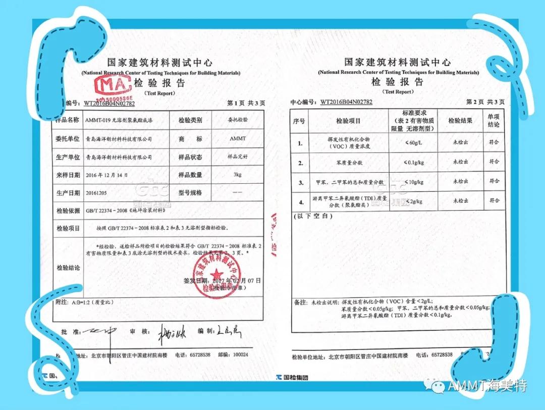 AMMT無溶劑系列產(chǎn)品由異氰酸酯預(yù)聚物、改性多元醇樹脂、擴(kuò)鏈劑、填料和助劑組成的雙組份材料,綠色環(huán)保,極低VOC。目前主要產(chǎn)品有:AMMT-045無溶劑聚氨酯地坪材料(包括自流平、防靜電自流平、砂漿自流平等類型地坪材料)、AMMT-046無溶劑聚脲自流平地坪材料、AMMT-019無溶劑聚氨酯底漆、AMMT-326無溶劑環(huán)氧底漆等。AMMT無溶劑系列產(chǎn)品經(jīng)過權(quán)威機(jī)構(gòu)檢測均達(dá)到新標(biāo)準(zhǔn)環(huán)保要求。