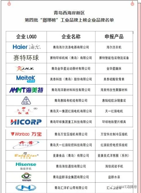 話說:近日,青島西海岸新區(qū)公布了第四批“瑯琊榜”工業(yè)品牌上榜企業(yè)品牌名單,其中青島海洋新材料科技有限公司”等25個企業(yè)品牌榮登榜單。